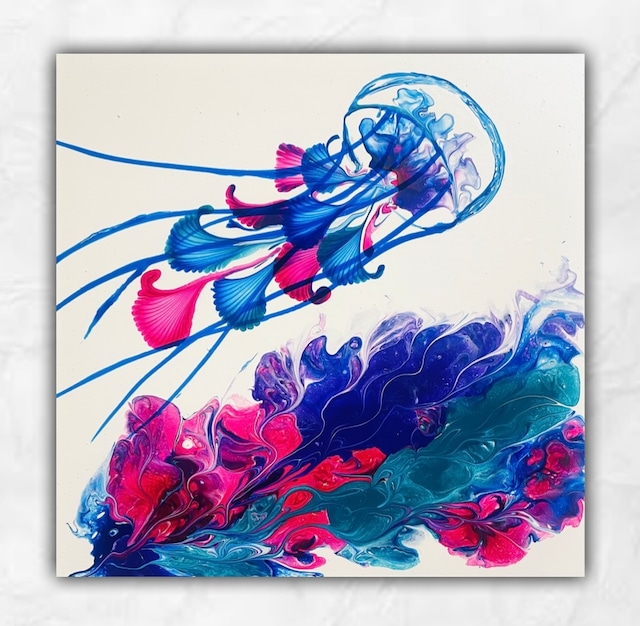 海月(クラゲ)にはその生き方から様々な意味があります。 ① 心の中や魂の穢れを浄化 ②自由と柔軟性 ③変化と再生 海月には目や脳みそがありません。だからこそ本能や直感で環境に適応し、遺伝子レベルでの学びを得てきました。世間のことなんて一切考えず、見ず、聞かず、彼らのように直感で進むような生き方が僕らにも必要なのかもしれません。 ただ必死で生きるために足掻いて、もがいて きたからこそ今の彼らがあります。それは皆さんも同じではないでしょうか? あなたにとっての今は、あなたが今日まで必死に生きて証です。色んな不安や後悔と戦ってきた歴史が今のあなたを作っています。 どうかそんな自分を愛して欲しいと思い描きました。 作品について ・サイズ(20×20 cm) ・額縁なし ・送料別